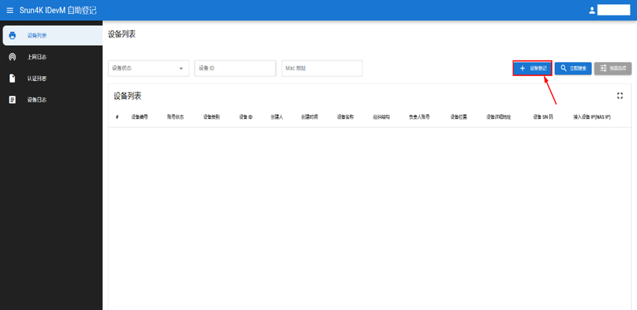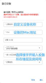 在页面点击“设备登记”,填写正确的设备信息并点击确认。
