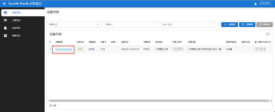 哑终端设备登记完成后即可访问校园网,可在“设备列表”查看或删除已登记的哑终端设备。