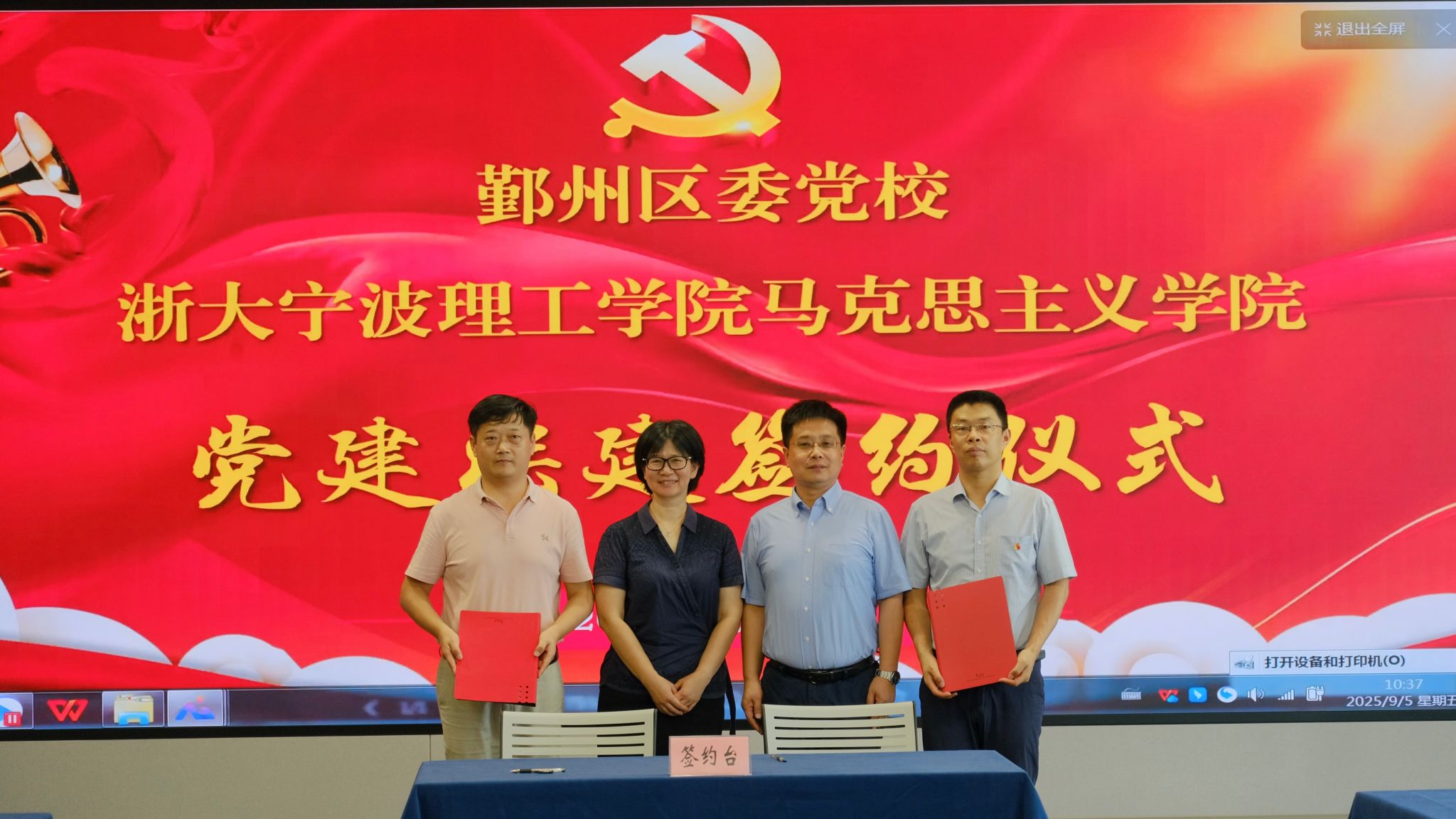 9月5日下午,鄞州区委党校与我院党委在区委党校举行党建联建合作框架协议签约仪式,标志着双方党建工作协同推进迈入新阶段。区委党校常务副校长吴洁瑜,学院党委书记、执行院长伍醒出席活动并见证签约。