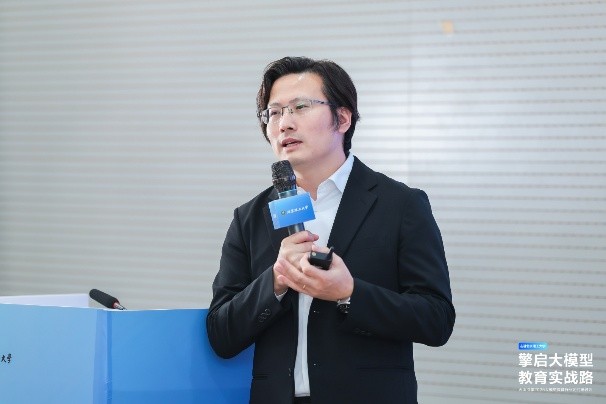 在主题报告环节,学校信息化办公室副主任康慨以《人工智能驱动的数字化转型探索与实践》为题,介绍了我校的信息化发展历程及建设成果,着重介绍了高效推进数字化转型、打造多层次全方位AI赋能矩阵、落实人工智能全员全过程全方位赋能等工作。南开大学党委网信办/大数据管理中心副主任焦宝臣、哈尔滨工业大学网信办/信息系统与解决方案中心负责人仲玮、火山引擎通用行业及决方案高级总监杜宁分别做了主题为《南开大学教育数字化转型实践分享》、《夯实基座,聚力赋能:高校AI应用体系建设路径思考》、《大语言模型趋势研判——驱动高效智能场景升级》的报告分享。与会专家围绕教育科技、创新教学模式、未来教育发展趋势,以及人工智能赋能高校教育教学和管理服务、大模型在高校中的运用、高校数字化转型等方面话题进行了深入探讨。